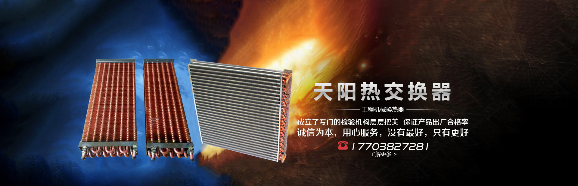 輝縣天陽電器有限責任公司位于肥沃的中原河南省輝縣市學院路中段工業集聚區興業園3號廠房,以制冷設備用冷凝器,蒸發器,熱交換器為主。主要材料為銅管鋁翅片,銅管銅翅片,鋁管鋁翅片。廣泛應用于冰箱冰柜,制冷設備,暖通設備,空調,自動售貨機,冷干機,超市立風柜,冷藏車,烘干機等產品領域?! 」咀?998年成立以來,始終堅持:“科技造就產業、質量成就信譽、誠信鑄就輝煌”的質量方針,從產品拓展上堅持“人無我有,人有我優,人優我特的”經營理念,25年來,從1998年開始供應河南冰熊集團下屬的冷柜廠,制冰機廠各種冷凝器;2003年之后,原冰熊集團的精英志士開始在全國各地發展,所到之處依托我公司供貨,以致于多家目前已具行業中佼佼者的公司,從而建立了如凱雪公司,兆邦公司、凌云公司、海寶公司、正雪公司、上海忠云、山東德萊維等幾十余家公司在草創時期的啟蒙供貨商,友好共贏長達十余年,成為我國制冷行業的供應商。以致在2015年初雙匯集團面向社會的招標書中指名要我公司冷凝器、蒸發器指定產品供應商